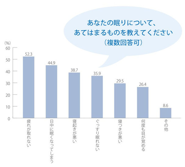 「寝つきが悪い」29.5%など、悩みもさまざま。